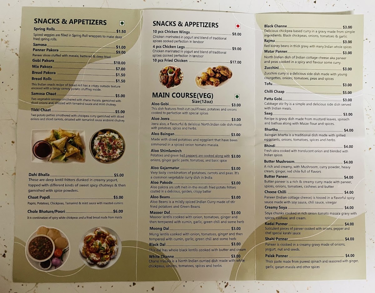 The menu appeals to both casual diners and those seeking affordable, home-cooked meals. The standout items include savory snacks like spring rolls and chat papdi, all prepared quickly without compromising taste. With prices that won’t break the bank, it’s ideal for any budget-conscious foodie.